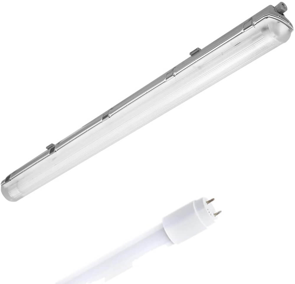 LED Feuchtraumleuchte mit LED Röhre für viele Anwendungsgebiete (Verdrahtung geeignet für nahezu jede LED Röhre). Die Feuchtraumwannenleuchte ist sehr gut geeignet für Kellerleuchte, Garagenleuchte, Werkstattleuchte, oder auch für den Hobbyraum. Außerdem ist die LED Feuchtraumleuchte auch im überdachten Außenbereich vielseitig einsetzbar. Die Leuchte ist als Deckenleuchte oder auch als Wandleuchte nutzbar.