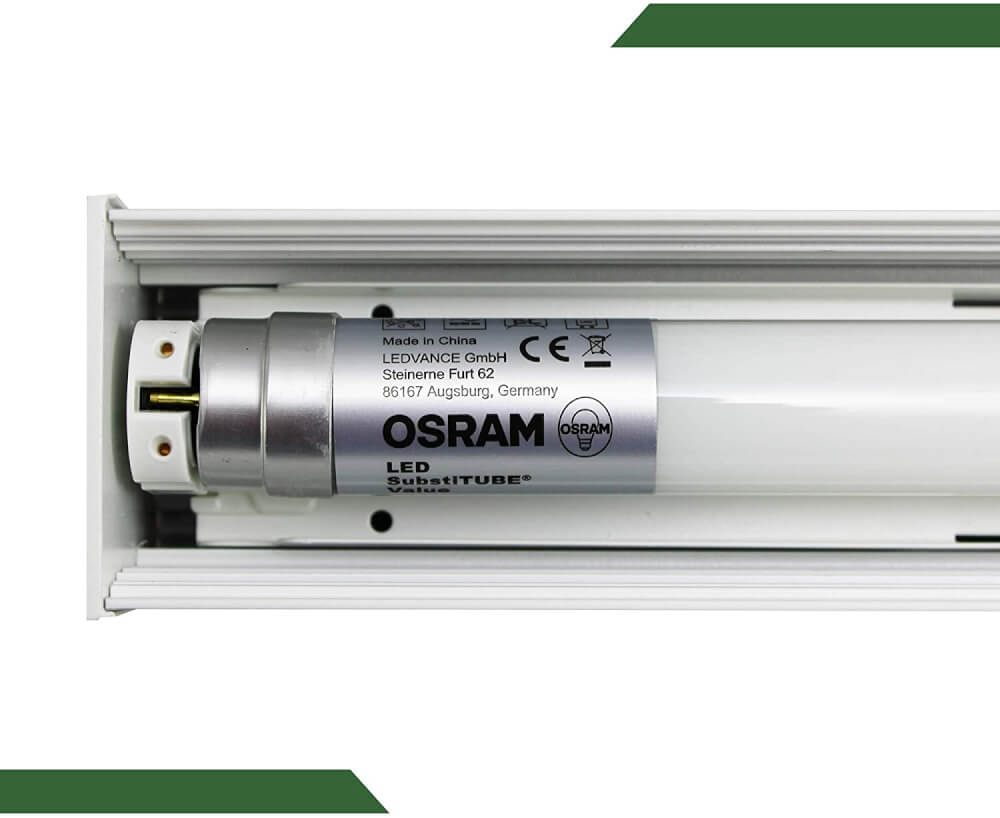 Die Leuchte kann mit unterschiedlichen Leuchtmitteln erworben werden. Wir haben 3000K (warmweiß), 4000K (neutralweiß) und 6500K (kaltweiß) zur Auswahl. Durch die Opal PMMA Abdeckung ist die Leuchte besonders hervorragend geeignet für Büros mit Bildschirmarbeitsplätzen – Ideal auch für Empfangsräume, öffentliche Räume und Geschäfts- und Warenräume.