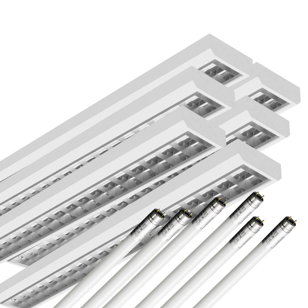 LED Rasteranbauleuchte Single-Raster, 150cm, 1-flammig: Ein ergonomisch gestalteter Arbeitsplatz fördert die Gesundheit und das Wohlbefinden. Gutes Licht ist dabei eine Grundvoraussetzung. Ziel einer guten Bürobeleuchtung ist es, den Arbeitsplatz den Normen entsprechend auszuleuchten und die Leuchte gleichzeitig als Gestaltungselement im Raum wirken zu lassen.