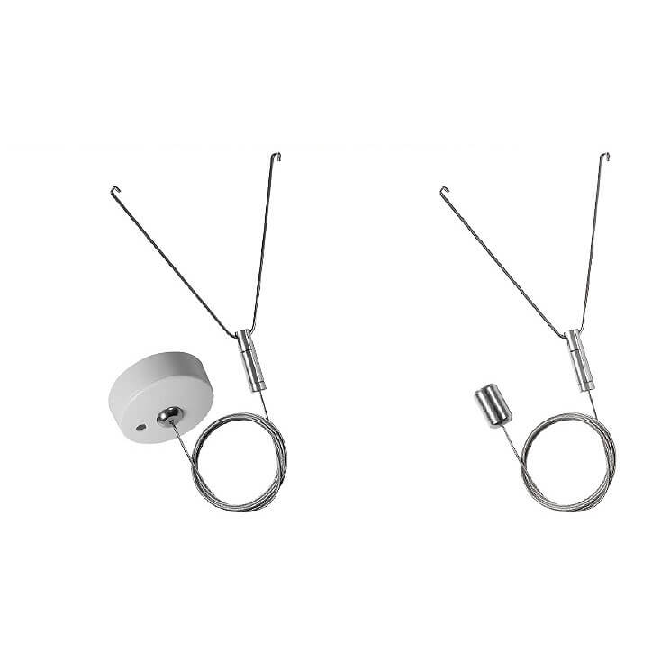 Seilaufhängung mit Spiralkabel (3 x 0,75²) und Edelstahlkappen für Pendelleuchten. Standardlänge 1,2m - höhenverstellbar. Geringerer Montageaufwand, modernes Design!